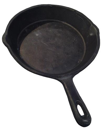 Carefully cast and artfully finished to resemble a well used cast iron skillet, this prop is an invaluable tool for many shows. Made from a durable dense rubber urethane plastic.