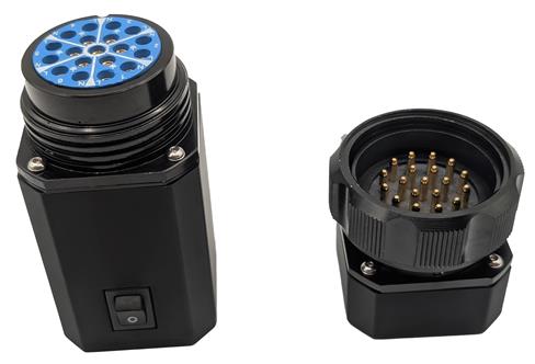 It is a compact, lightweight tester for 19 pin Socapex style cables. The tester features a two-part design that makes connecting to stiff cables easy. The display screen is daylight readable and tells you which pins are open or shorted and also tells you if a ground ring is present. The SocaTest runs for days on a single AA battery.